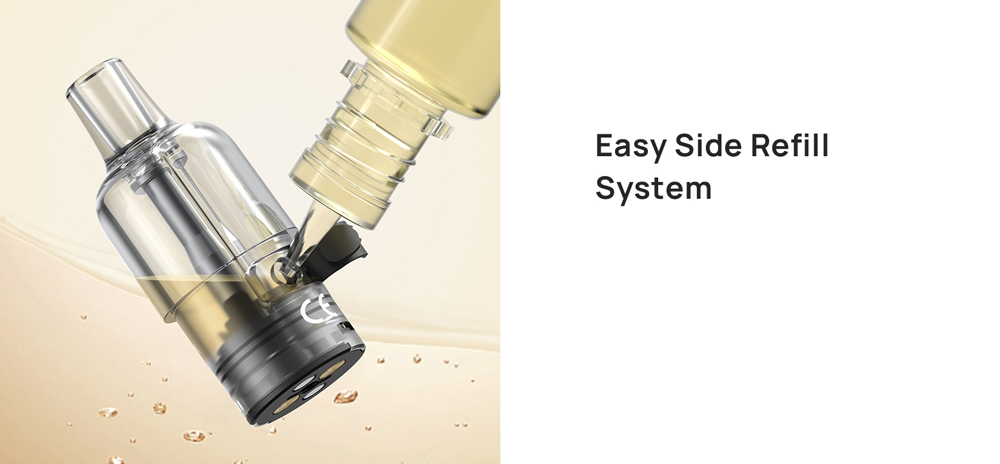 Το TG Pod διαθέτει ένα φιλικό προς το χρήστη σύστημα πλευρικής αναπλήρωσης, σχολαστικά σχεδιασμένο για αβίαστη λειτουργία με κύρια εστίαση στην ευκολία του χρήστη. Αυτό το καινοτόμο σύστημα όχι μόνο απλοποιεί τη διαδικασία επαναπλήρωσης, αλλά εξασφαλίζει επίσης μια εμπειρία ατμίσματος χωρίς διαρροές.