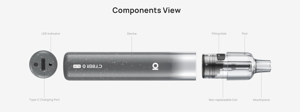 Με αναβαθμισμένη μπαταρία χωρητικότητας 1200 mAh και φιλικό προς το χρήστη σύστημα φόρτισης Type-C, το Cyber G Slim εξασφαλίζει μεγαλύτερες περιόδους ατμίσματος και λιγότερες επαναφορτίσεις, προσφέροντας εκτεταμένη απόλαυση.