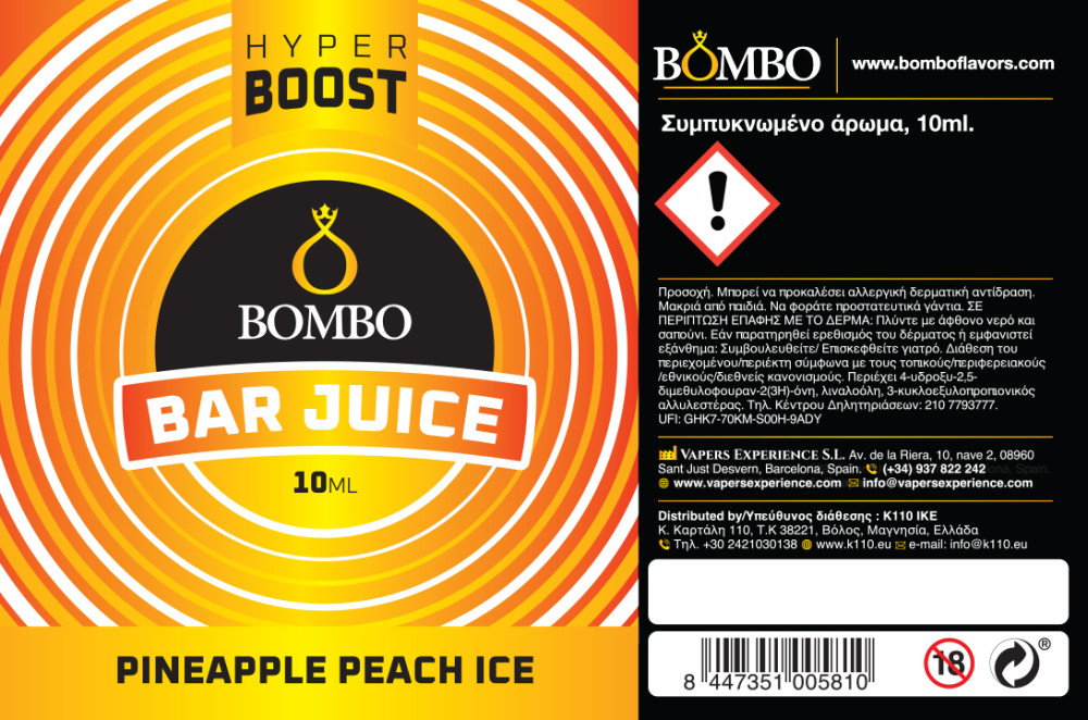 Bombo Bar Juice Hyper Boost Pineapple Peach Ice 10ml/120ml FS