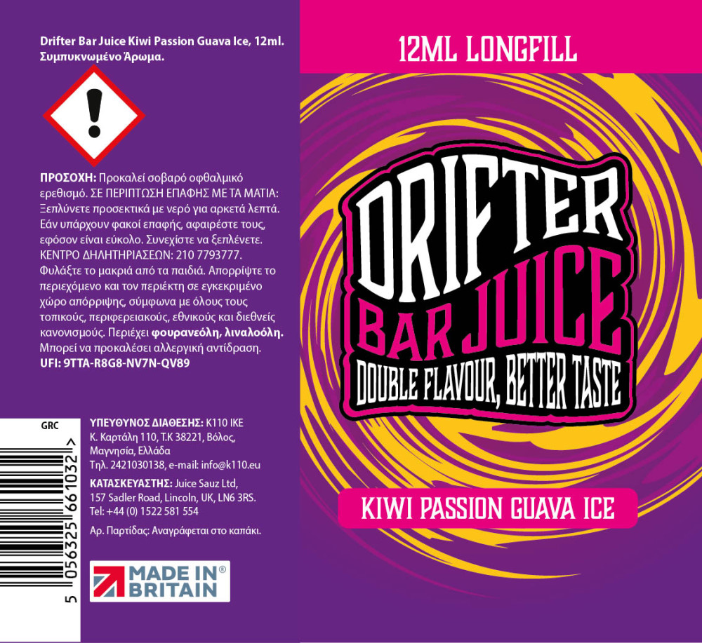 Drifter Bar Juice Kiwi Passion Guava Ice 12ml/60ml FS