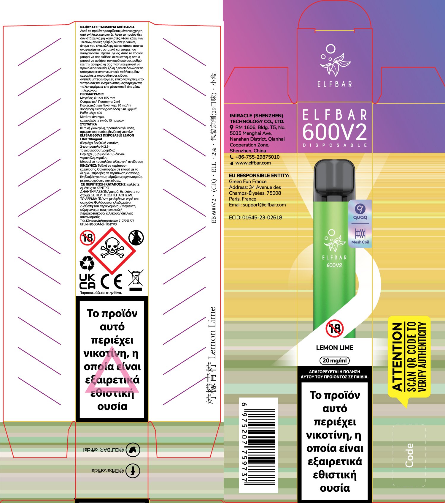 Elf Bar EB 600V2 20mg 2ml Lemon Lime