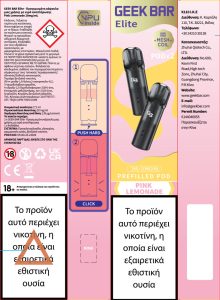Geek Bar Elite 20mg 2ml Prefilled Δεξαμενή 2τεμ Pink Lemonade