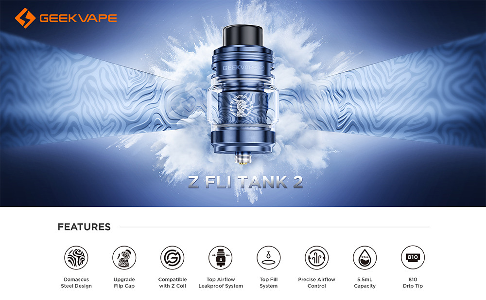 Παρουσιάζουμε τον Geekvape Z FLI 2 Ατμοποιητή , ένα υψηλής απόδοσης sub-ohm tank σχεδιασμένο για ατμιστές που απαιτούν ανθεκτικότητα, στυλ και στεγανότητα. Σχεδιασμένο με έντονη αισθητική από ατσάλι Δαμασκού, αυτό το tank διαθέτει ακριβή έλεγχο ροής αέρα από πάνω, χωρητικότητα 5,5 mL και αναβαθμισμένο σύστημα αναπλήρωσης με flip-top για γρήγορες και χωρίς ακαταστασία αναπληρώσεις. Το Z FLI 2 είναι πλήρως συμβατό με τις δημοφιλής αντιστάσης Geekvape Z Series, καθιστώντας το ιδανικό για πυκνά σύννεφα ατμού και πλούσια γεύση. Με το σύστημα ροής αέρα από πάνω, το Z FLI Tank 2 εξαλείφει τις διαρροές ενώ παράλληλα ενισχύει την παραγωγή ατμού. Το πιο σφιχτό καπάκι εξασφαλίζει πρόσθετη ασφάλεια εν κινήσει και το επιστόμιο 810 προσφέρει βέλτιστο άτμισμα Direct-To-Lung (DTL). Είτε αναβαθμίζετε τη συσκευή σας είτε τη συνδυάζετε με το mod Aegis Legend 5, το Geekvape Z FLI Tank 2 προσφέρει απόδοση ανώτερου επιπέδου και ξεχωριστό σχεδιασμό.