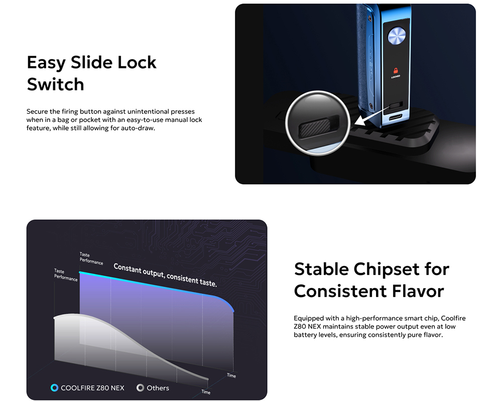 Το Coolfire Z80 NEX συνδυάζει την premium κατασκευή και ένα σύστημα TopSync για απρόσκοπτη πλήρωση και έλεγχο ροής αέρα. Η βελτιωμένη τεχνολογία Z Coil αναδεικνύει πιο πλούσια γεύση, προσφέροντας μία καλύτερη εμπειρία ατμίσματος.