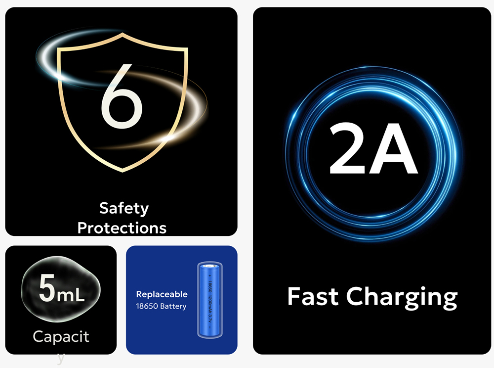 Μπαταρία: 1x18650mAh (Δεν συμπεριλαμβάνεται στην συσκευασία)