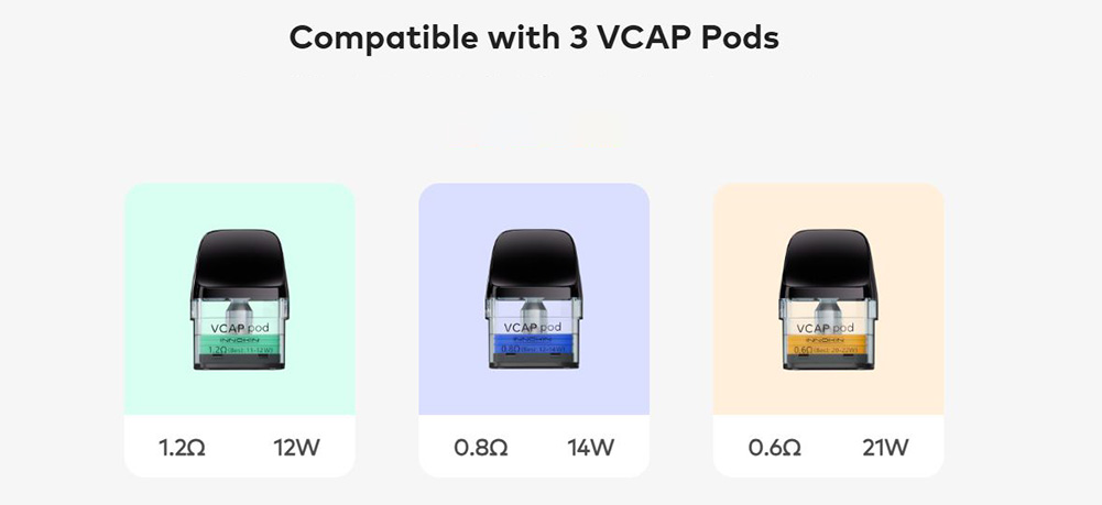 Οι δεξαμενές VCAP κατασκευασμένες με mesh αντιστάσης προσφέρουν μέγιστη γεύση και μεγάλη διάρκεια ζωής, παρέχοντας μέγιστη ισχύ εξόδου 21 W.