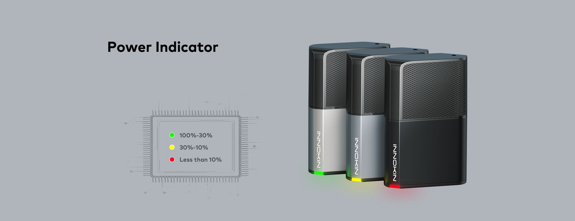 Κατανοήστε το επίπεδο ισχύος που απομένει με σιγουριά, χρησιμοποιώντας την απλή ενδεικτική λυχνία LED που είναι τοποθετημένη στο πλάι.