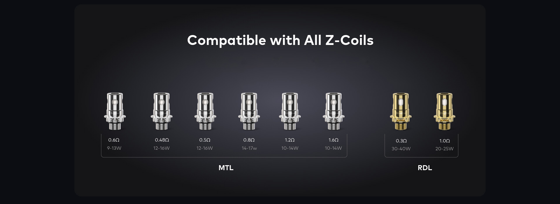 Ο κλασικός σχεδιασμός push-to-install του Zenith-Coil και η ενσωματωμένη υποδοχή 510 εξασφαλίζουν μέγιστη αγωγιμότητα και ελάχιστη ταλαιπωρία και ακαταστασία κατά την αλλαγή αντιστάσεων.
