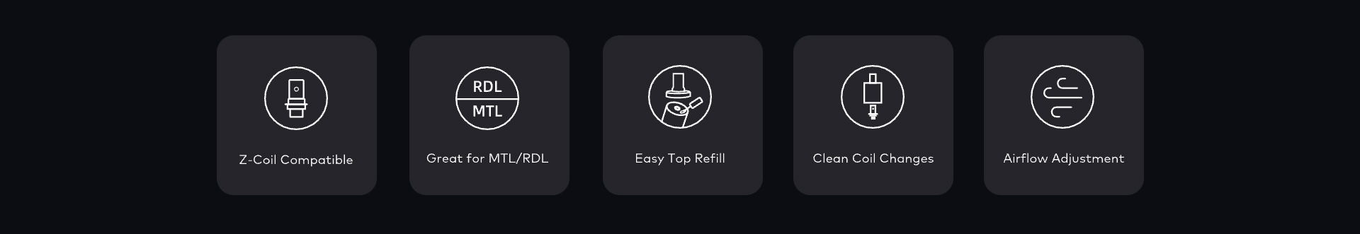 Ο κλασικός σχεδιασμός push-to-install του Zenith-Coil και η ενσωματωμένη υποδοχή 510 εξασφαλίζουν μέγιστη αγωγιμότητα και ελάχιστη ταλαιπωρία και ακαταστασία κατά την αλλαγή αντιστάσεων.