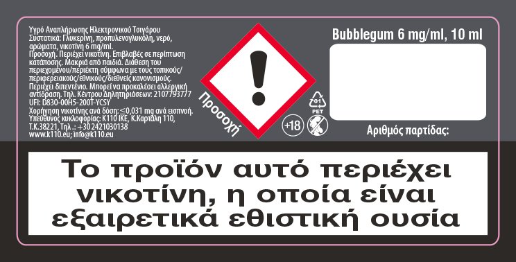 Innovation Bubble Gum 06mg 10ml Υγρό Αναπλήρωσης