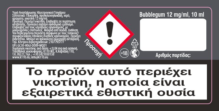 Bubble Gum – Γεύση τσιχλόφουσκας με μια νότα μενθόλης και ζαχαρωτού.