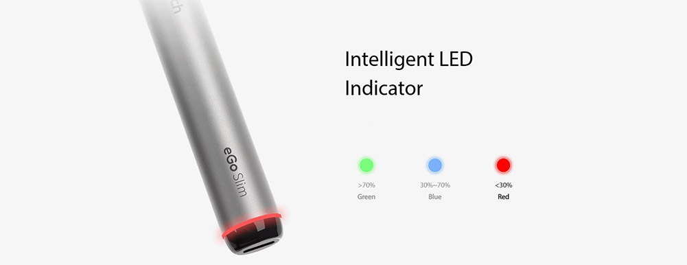 Το eGo Slim Mod διαθέτει κομψή, ελαφριά κυλινδρική σχεδίαση, που προσφέρει ρυθμιζόμενη ροή αέρα και ένδειξη μπαταρίας LED.