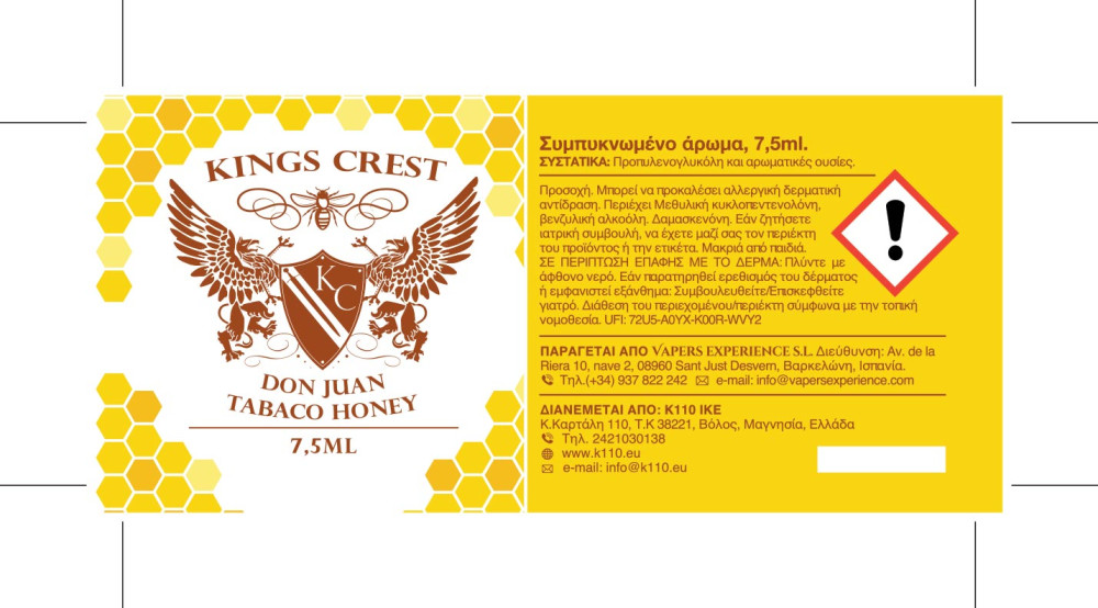 Kings Crest Don Juan Tabaco Honey 7.5ml/30ml Flavorshot