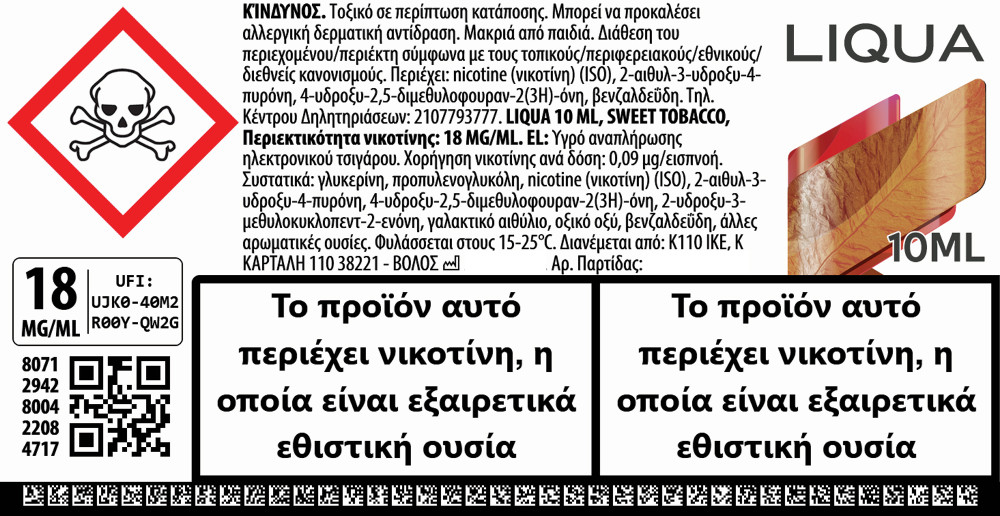 Liqua Sweet Tobacco 18mg 10ml Υγρό Αναπλήρωσης