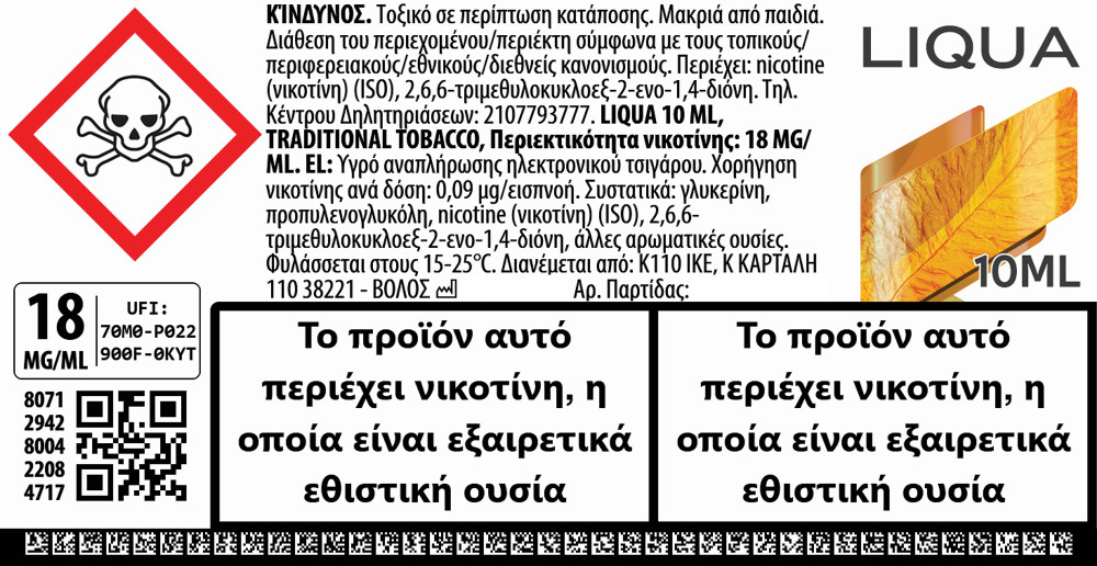 Liqua Traditional Tobacco 18mg 10ml Υγρό Αναπλήρωσης