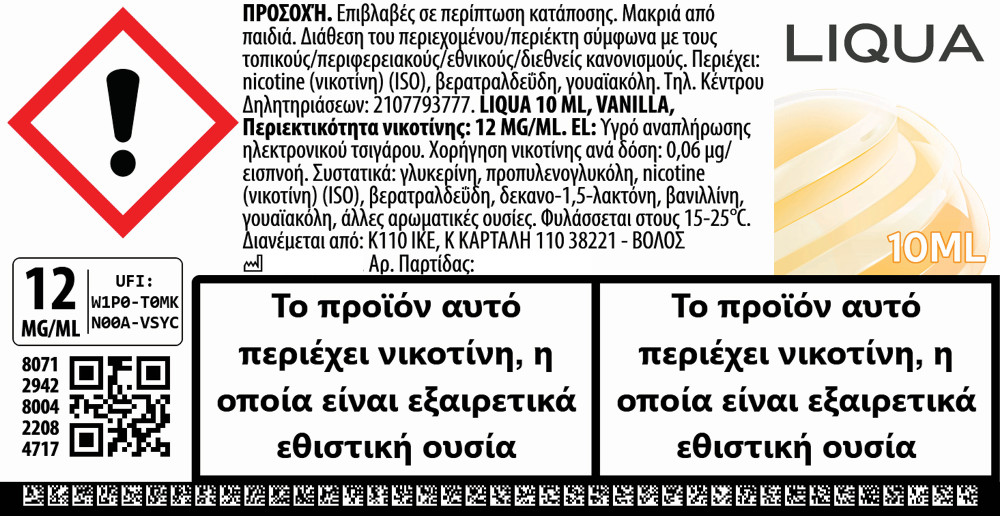 Liqua Vanilla 12mg 10ml Υγρό Αναπλήρωσης