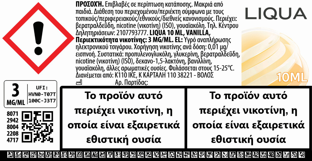 Liqua Vanilla 3mg 10ml Υγρό Αναπλήρωσης