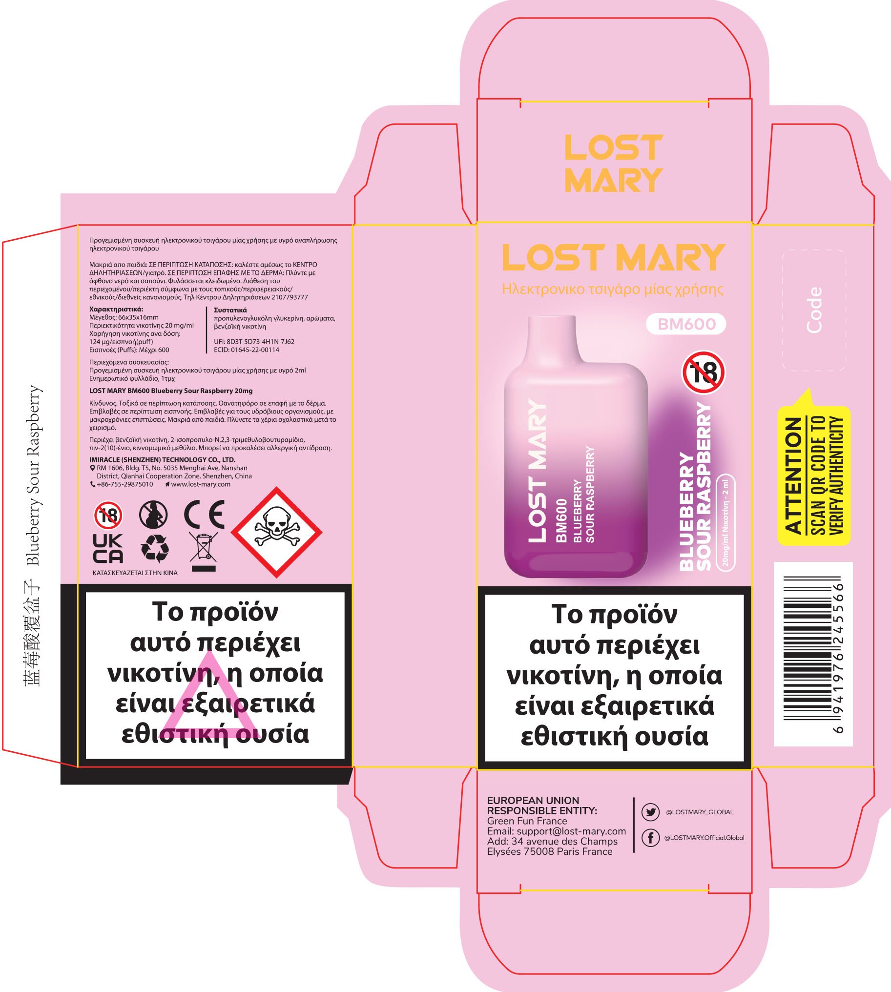 Lost Mary BM600 20mg 2ml Blueberry Sour Raspberry |