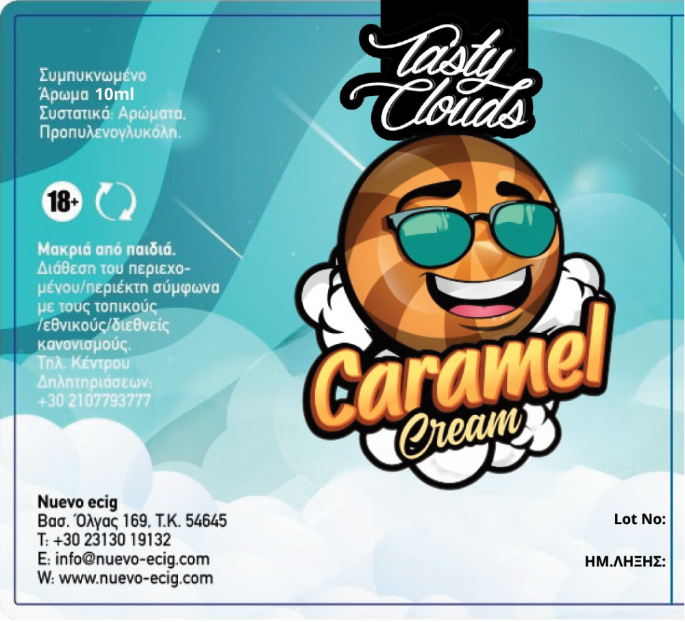 Μία γεύση, χίλιες αναμνήσεις, θα πείτε μόλις δοκιμάσετε το Caramel Cream της Tasty Clouds. Καραμέλα βουτύρου αναμειγμένη με πλούσια κρέμα ζαχαροπλαστικής, μια γεύση που θα σας θυμίσει τις γνωστές καραμέλες που τρώγατε μικροί!!!