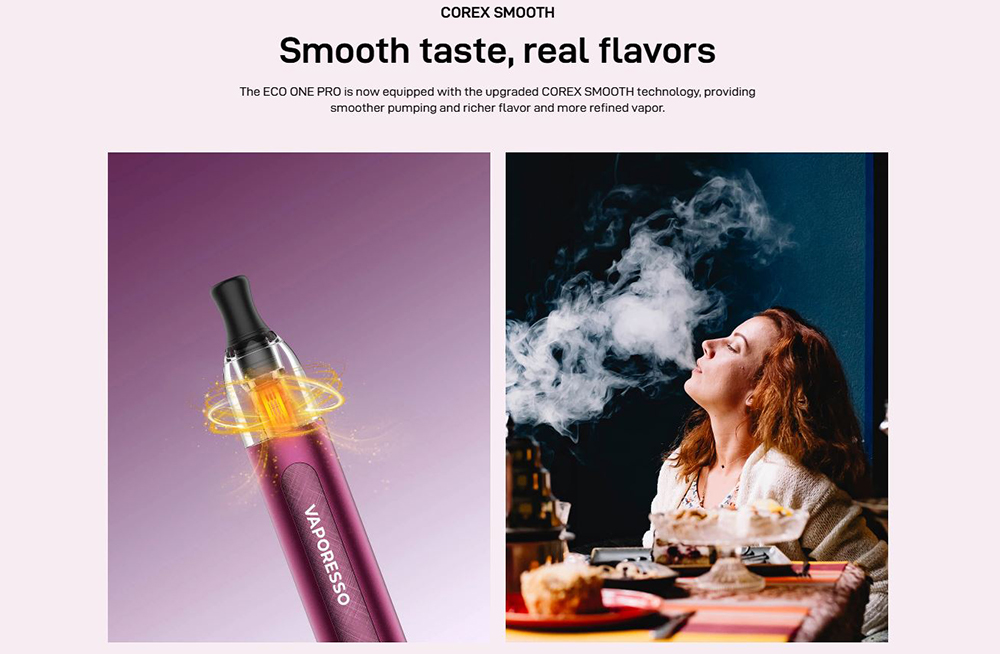 Το ECO ONE PRO είναι ένα pod επόμενης γενιάς, σχεδιασμένο για όσους αναζητούν απλότητα χωρίς συμβιβασμούς στην απόδοση. Διαθέτει ένα κομψό, συμπαγές σώμα με μια ισχυρή μπαταρία 1400mAh, προσφέροντας 27% μεγαλύτερη χωρητικότητα σε σχέση με τα προηγούμενα μοντέλα. Με δυνατότητα πλήρωσης από πάνω κάνει την αναπλήρωση πιο γρήγορη και εύκολη. Ενισχυμένο με την τεχνολογία COREX SMOOTH, προσφέρει 20% καλύτερη γεύση. Το αναβαθμισμένο φίλτρο διαρκεί 80% περισσότερο, παρέχοντας μια πιο καθαρή, πιο ρεαλιστική εισπνοή.