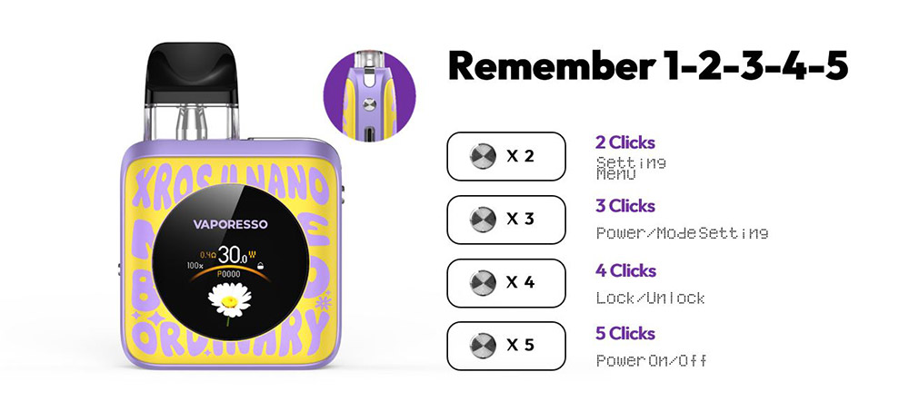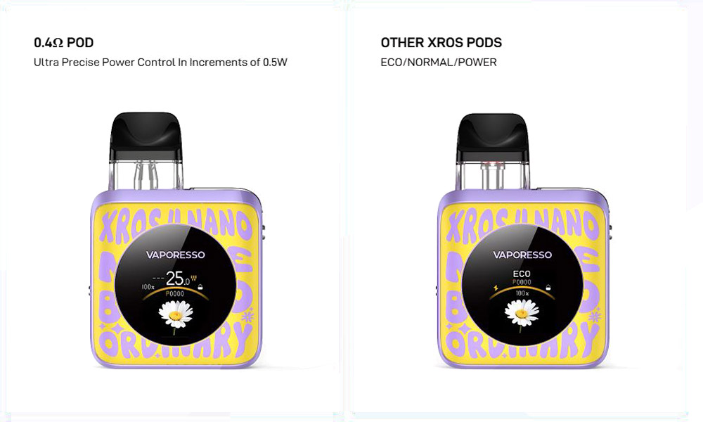 Συμβατό με τη δεξαμενή 0.4ohm για ακριβή ρύθμιση ισχύος ενώ με τις υπόλοιπες δεξαμενές XROS ρυθμίζεται σε τρία επίπεδα.