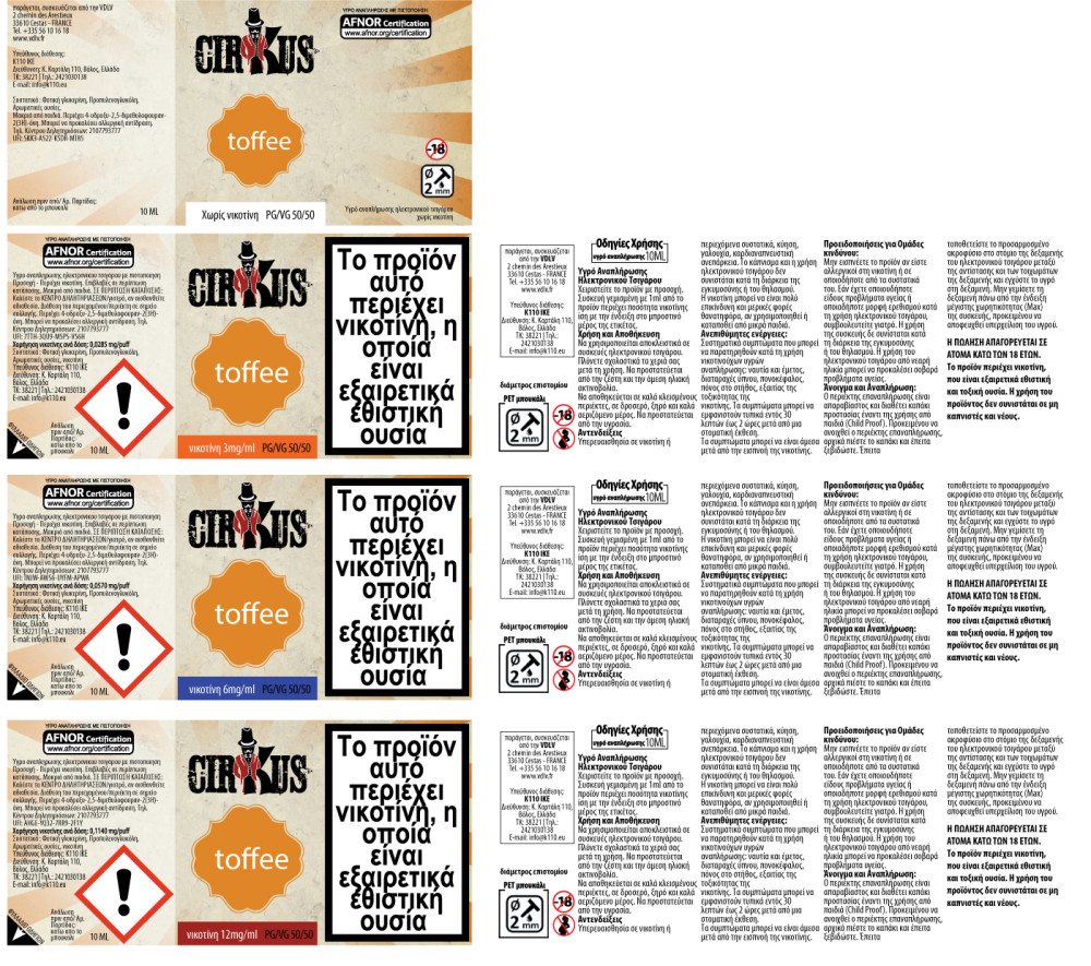 Τα υγρά αναπλήρωσης και τα αρώματα Cirkus βασίζονται σε φυσικά και τεχνητά αρώματα τροφίμων.