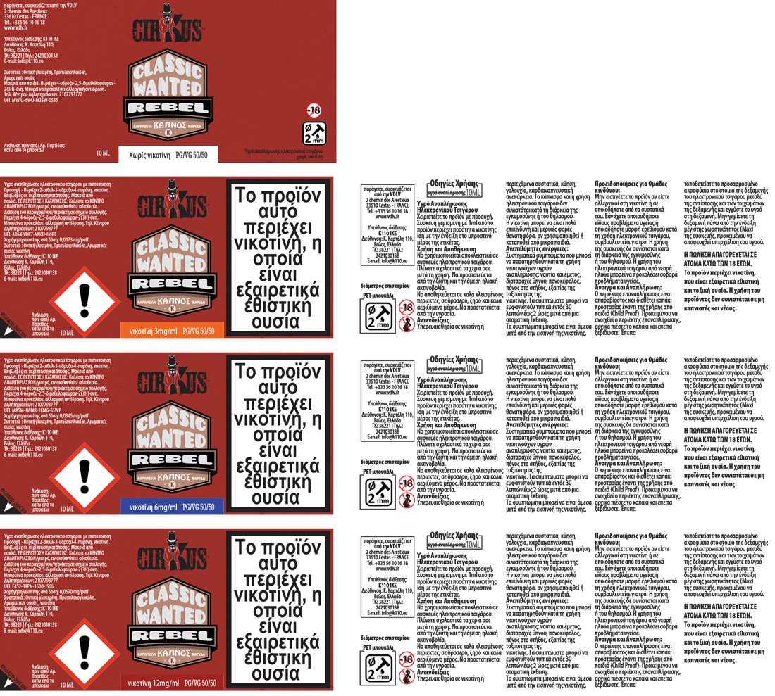 VDLV Wanted Cirkus Rebel 12mg 10ml Υγρό Αναπλήρωσης