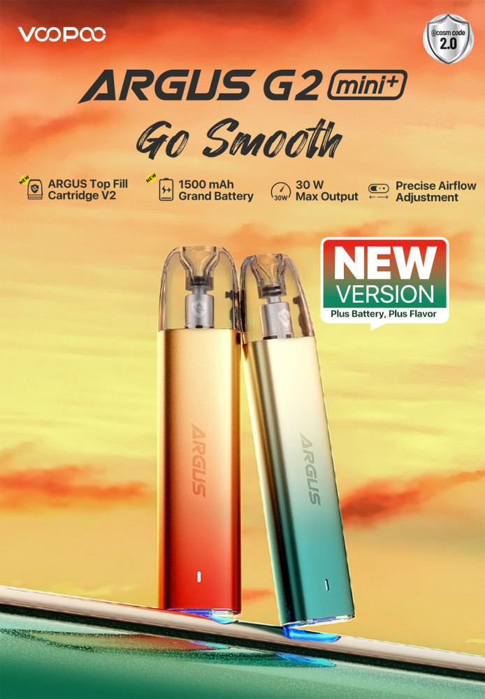 Το Argus G2 Mini Plus είναι η αναβαθμισμένη έκδοση του Argus G2 Mini με πιο ισχυρή μπαταρία 1500mAh, χωρητικότητα υγρού 3ml και πιο βολικό σύστημα πλήρωσης από επάνω για μεγαλύτερη προστασία από διαρροές. Η ρύθμιση της ροής του αέρα βρίσκεται στο μπροστινό μέρος για μεγαλύτερη ευκολία, ενώ η λυχνία LED επιτρέπει στον χρήστη να ελέγχει την κατάσταση της μπαταρίας.