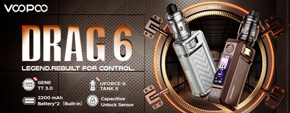 Το DRAG 6 είναι ένα KIT επαγγελματικών προδιαγραφών με ενσωματωμένη μπαταρία, σχεδιασμένο για κορυφαία απόδοση γεύσης, ακριβή έλεγχο και σταθερή ισχύ σε υψηλά watt.