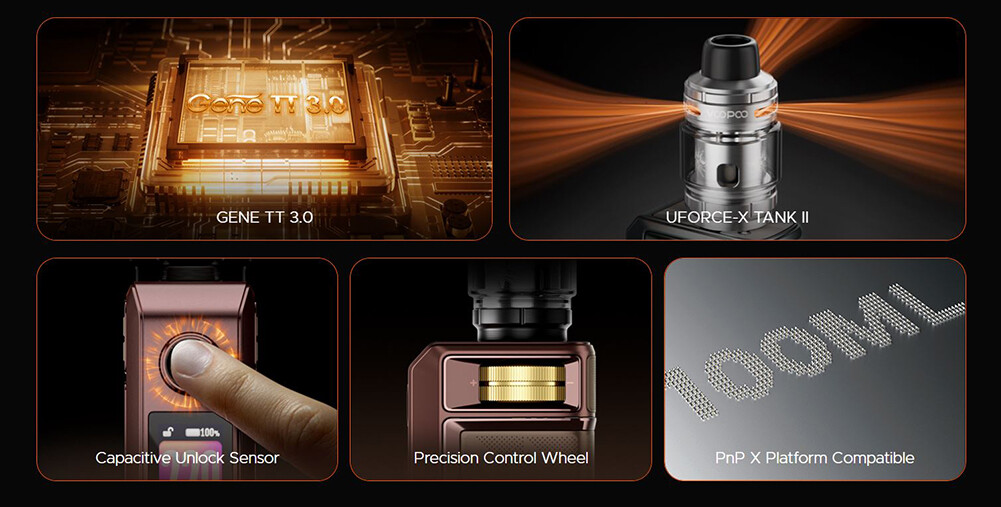 Σε συνδυασμό με το αναβαθμισμένο UFORCE-X TANK II (PnP X), το εξελιγμένο σύστημα airflow εξασφαλίζει πιο ομαλό ατμό και πλουσιότερη γευστική απόδοση.