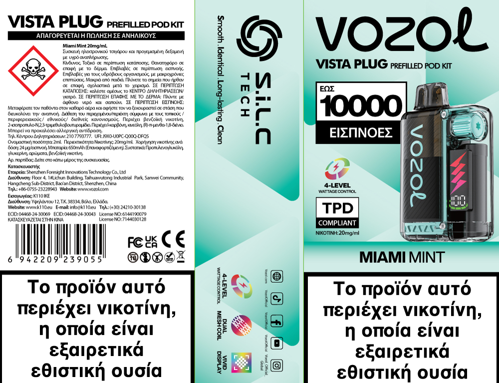 Vozol Vista Plug 20mg 2ml Prefilled Δεξαμενή + 10ml e liquid Miami Mint